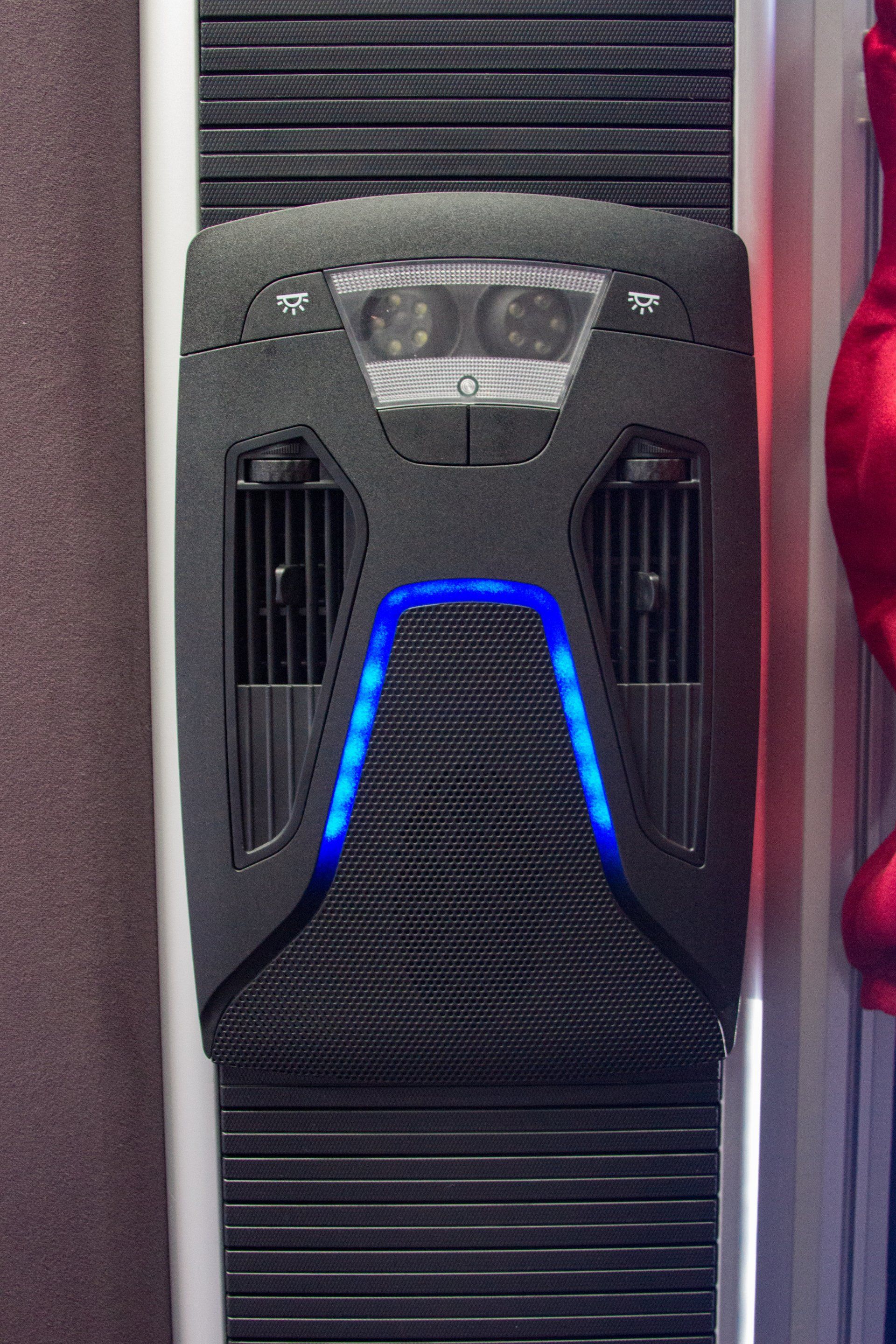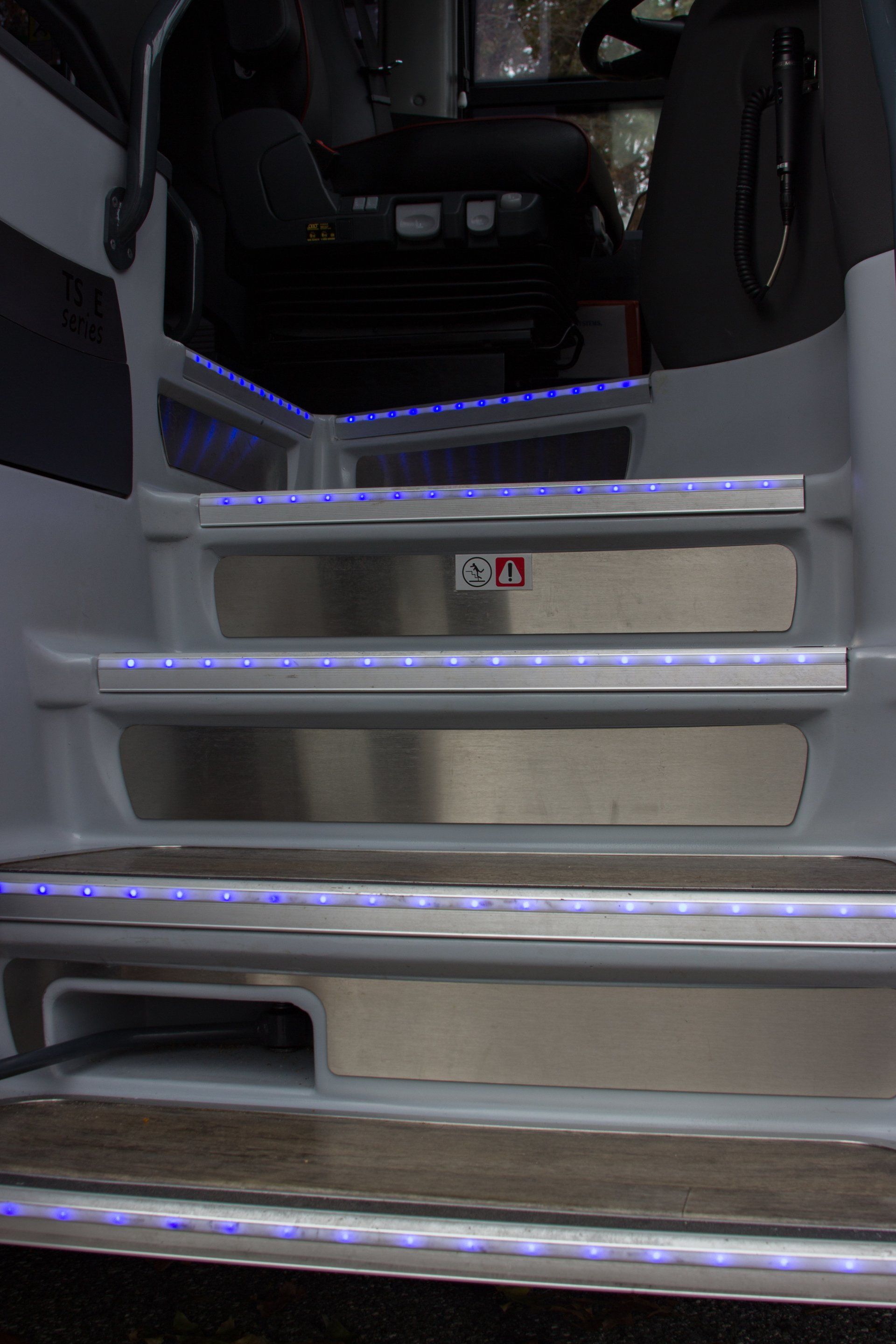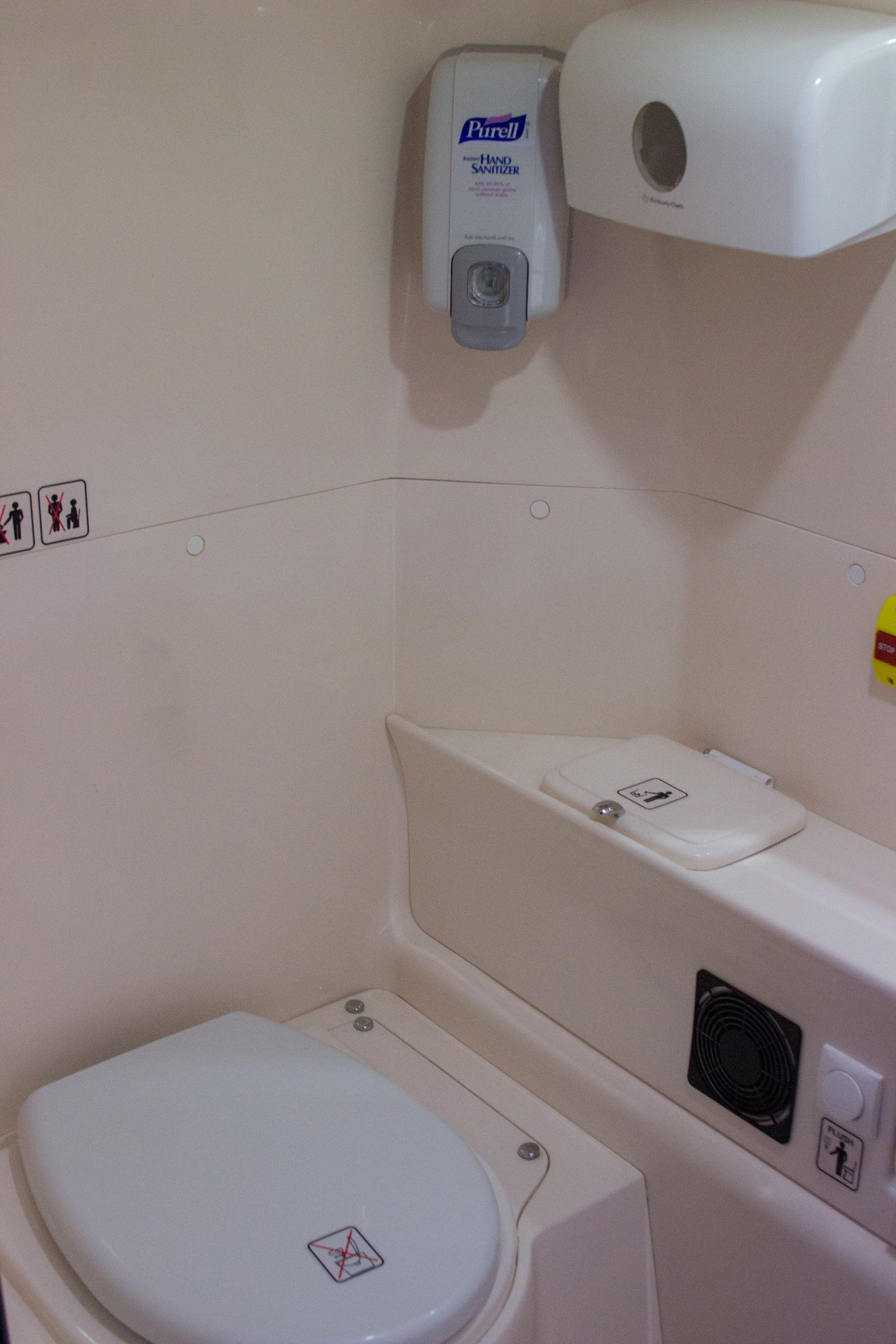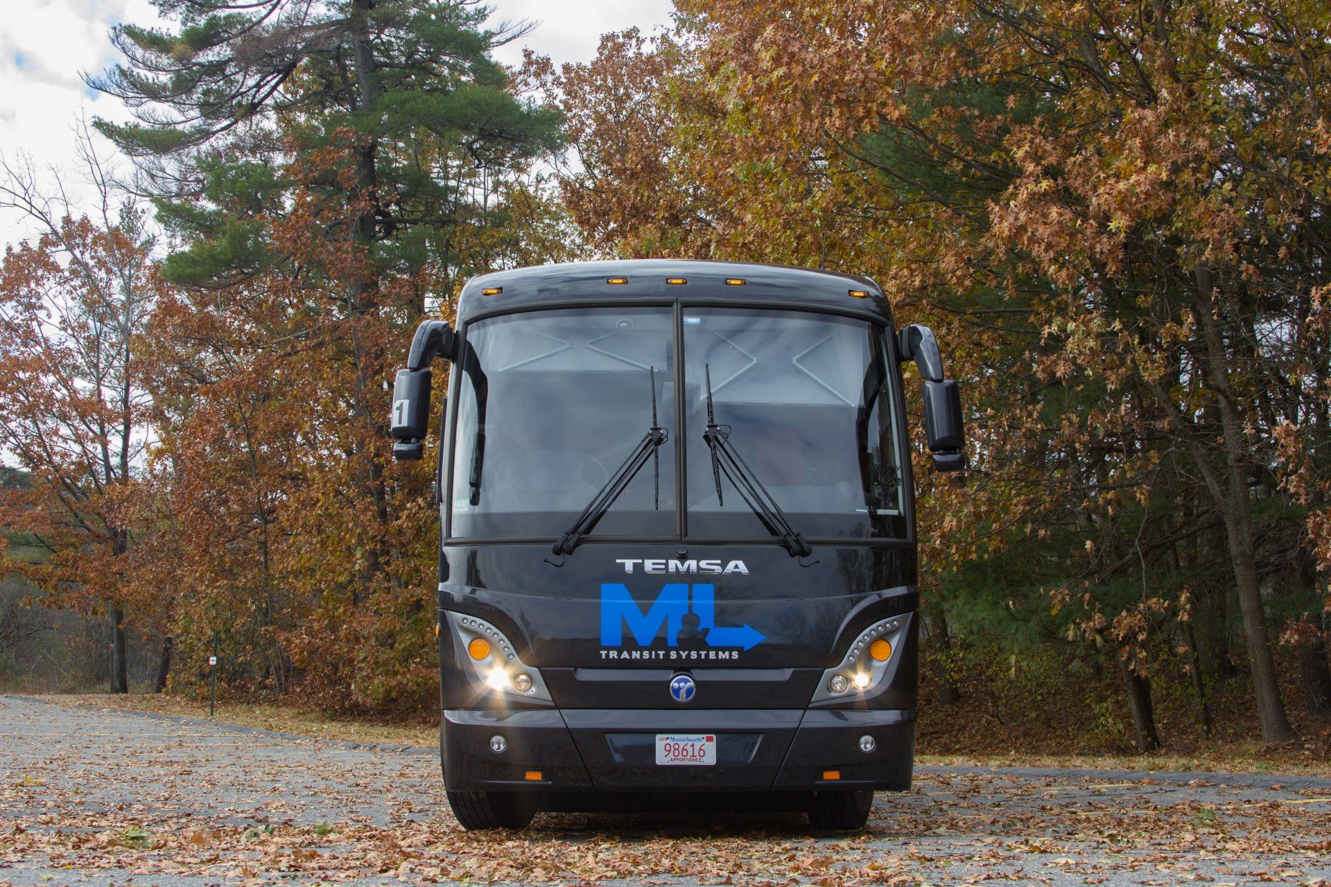 Our 40 passenger premium flagship coach includes A/C, CD/DVD player, USB & 110AC outlets per seat, monitors, intercom system, high-back reclining leather seats with 3-point seat belts, reading lights, luggage racks, wood grain floor, and a lavatory with a hand wash station.